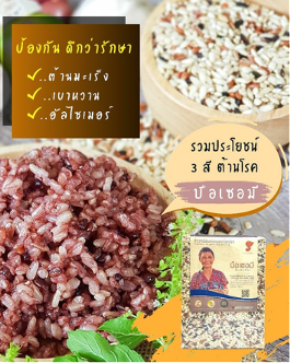 เป็นการเอาข้าวกล้องสามสายพันธุ์มาผสมกัน บือกี บือซากอ บือซู ปลูกโดยไม่ใช้สารเคมี ปลอดสารพิษ